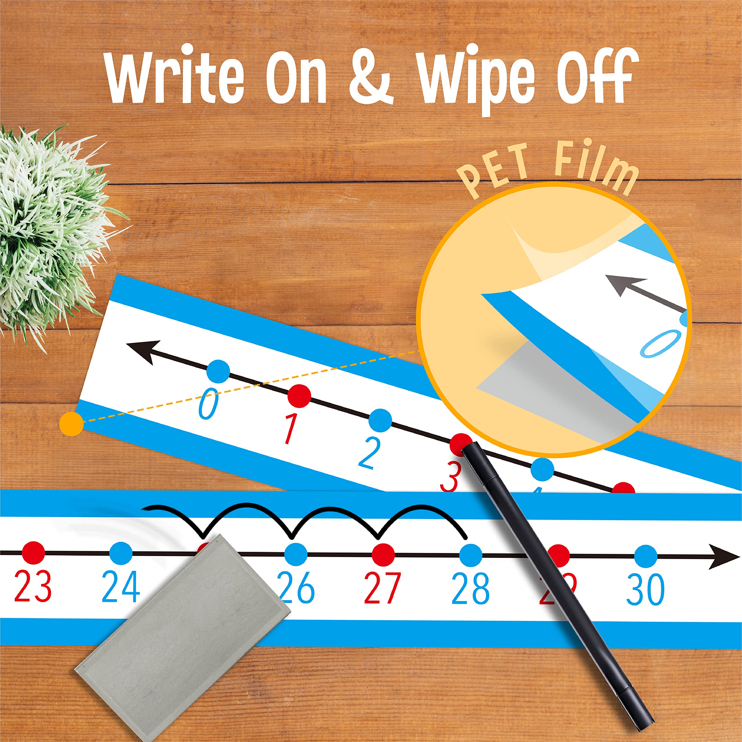 36 PCS Student Number Line, 0 to 30 Number Line Strips Dry Erase Surface Number Cognition, Counting, Sequencing, Color-Coded Even and Odd Numbers, Write on & Wipe Off for Classroom Use