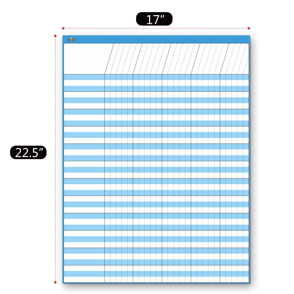 Dry Erase Incentive Chart/Chore/Responsibility/School Attendance/Homework Progress Tracking Chart, 6 Pack in Multi-Color, 36 Rows X 25 Columns (17" x 22.5")