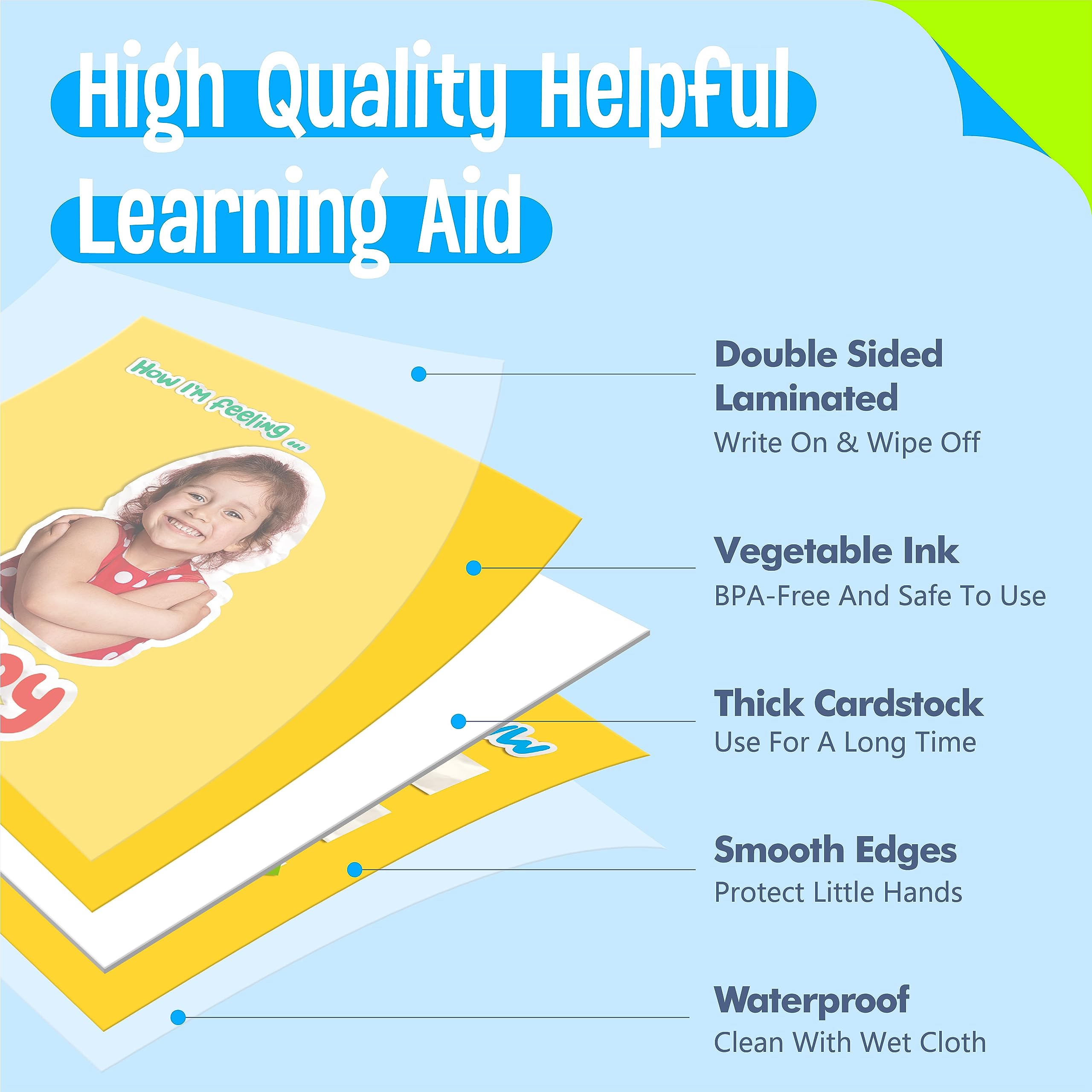 - Educational Tool: This is a useful tool to help children identify and express their emotions. By flipping through the pages and selecting different moods, children can learn to recognize and understand different emotions, articulate their feelings in an engaging way. Thus, children can develop empathy, communication skills, and a greater sense of self-awareness.