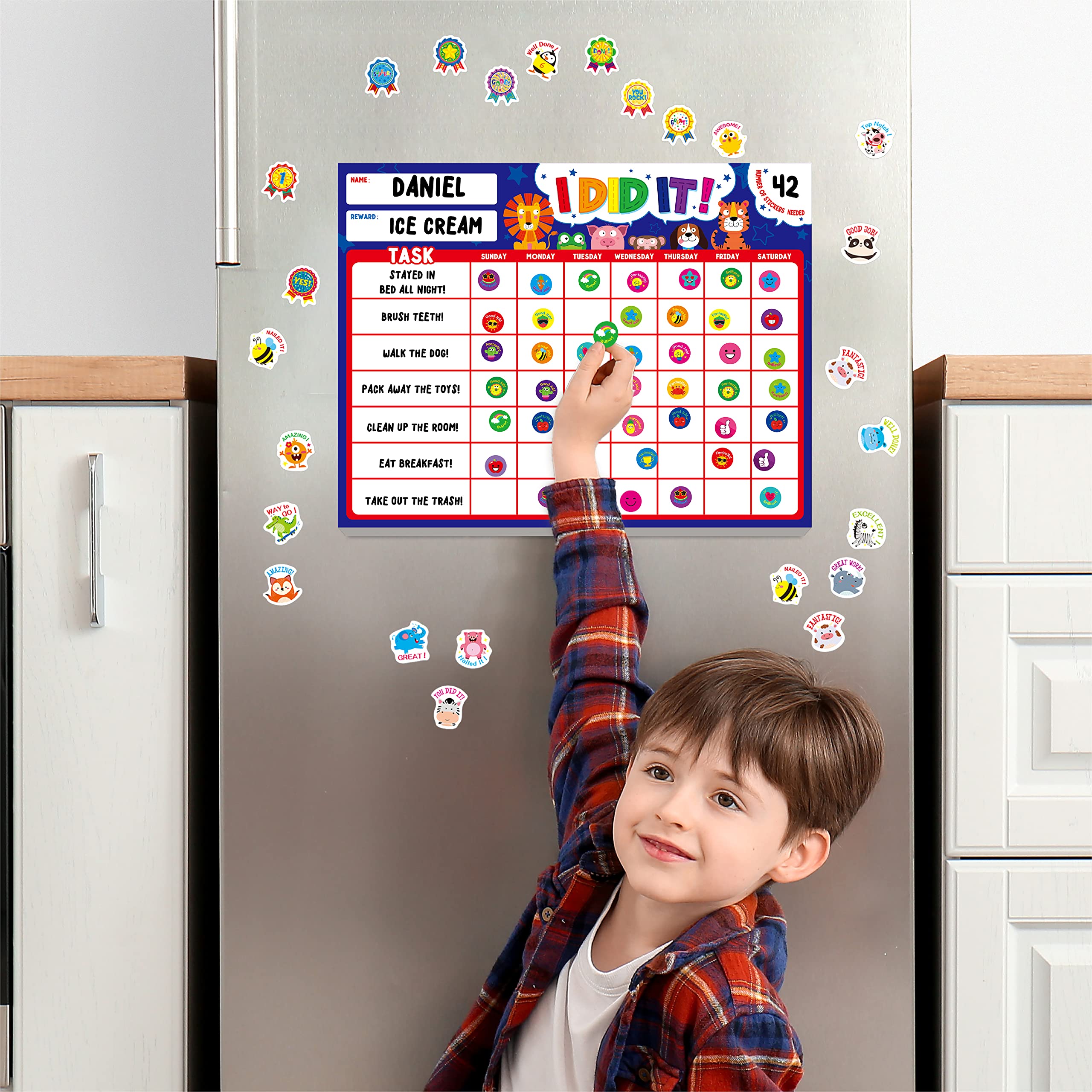 Magnetic I Did It Reward Chart, Behavior Reward Chart System with 50 Perforated Sheets Plus 2648 Motivational Stickers Fridge Daily Schedule Chore Chart to Motivate Good Habits & Responsibilities—