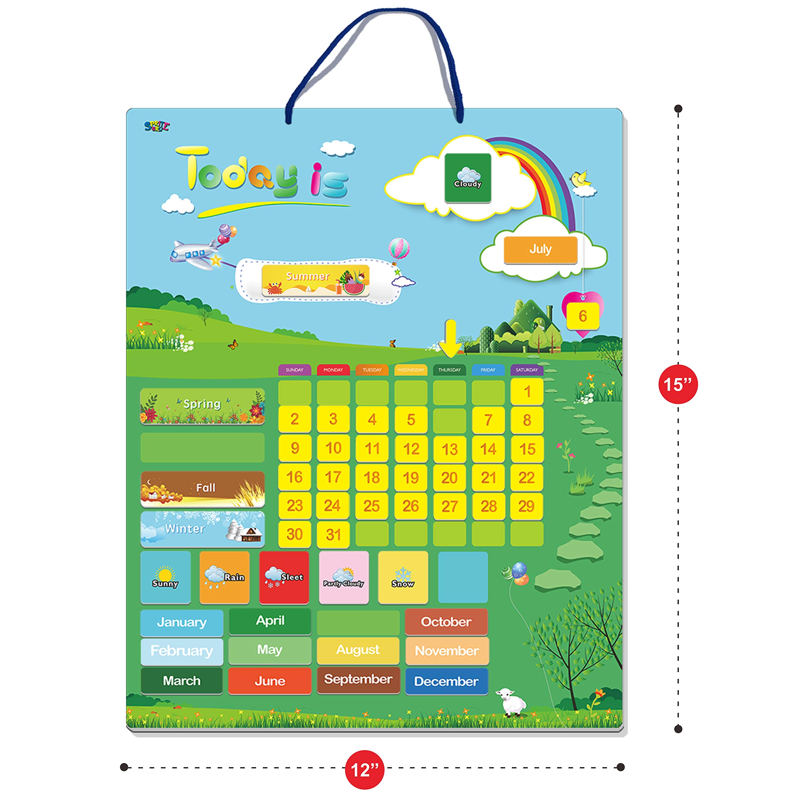 Magnetic Learning Calendar with Weather Station 55 PCS (15” X 12” Wall Mountings Ready)—