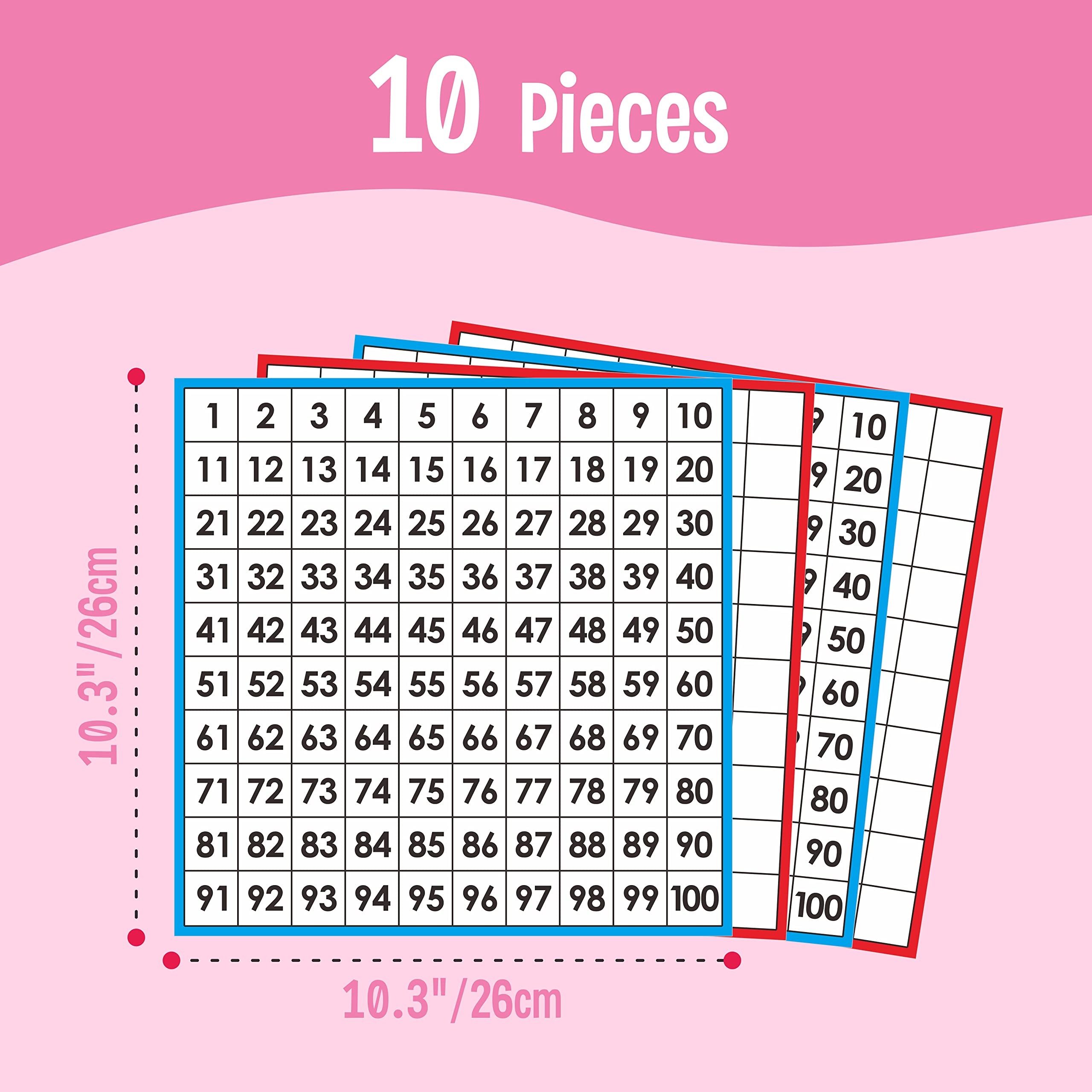 - Value Pack: It comes with 10 sheets double sided number charts, each measures about 10.3” x 10.3”. A great tool to expand understanding of numbers, counting and order, suitable for homes, math centers, classrooms, etc.