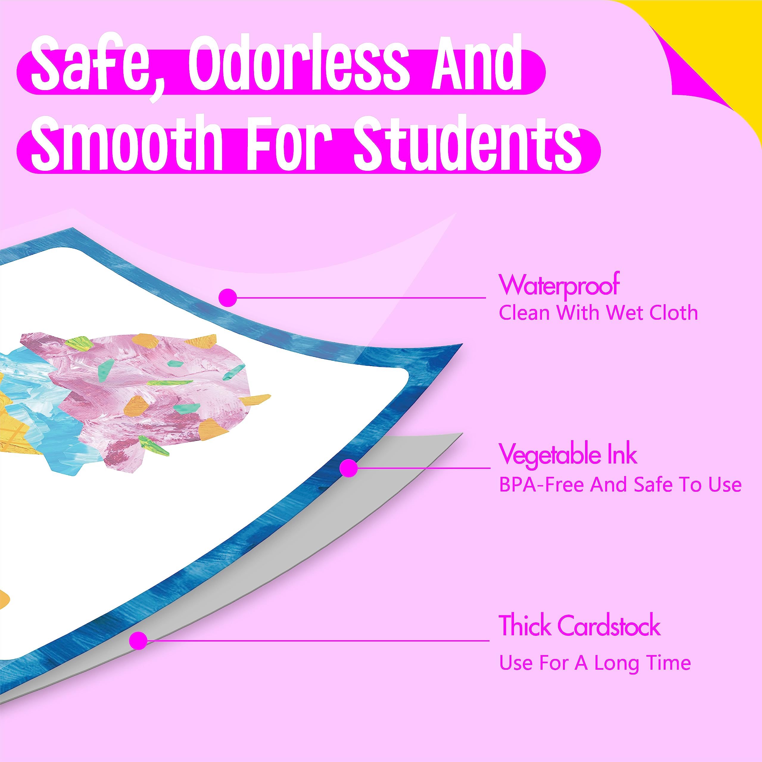 - Premium Quality: The posters are made from thick cardstock, durable and handy. Coated with PET film layer, waterproof and easy to clean with damp cloth. Printed with premium plant ink, no odd smell and safe to use. And non-glare surfaces will protect kids’ eyes.
