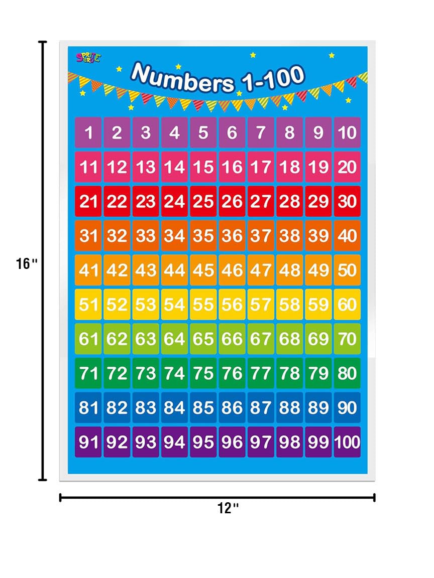 SpriteGru Alphabet, Numbers 1-100,2 LAMINATED Educational Posters for Toddlers 16x12inch